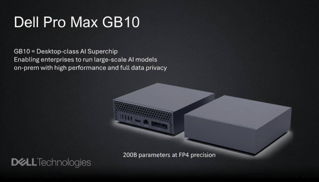 Dell Pro Max with GB10 is a desk‑side AI system designed not only for local AI development, but also for scalable AI infrastructure adoption. It enables organizations to start with a single AI device and expand seamlessly into enterprise‑grade AI environments.