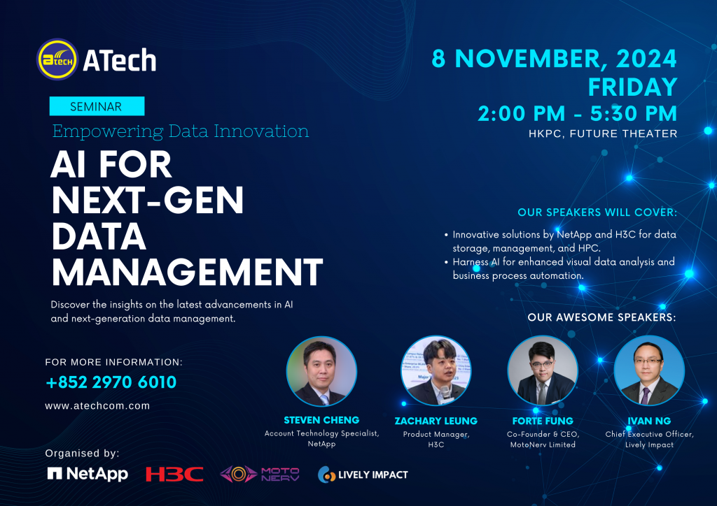 We are excited to invite you to our upcoming seminar “Empowering Data Innovation – AI for Next-Gen Data Management”, where industry leaders and experts will converge to share insights on the latest advancements in AI and next-generation data management.